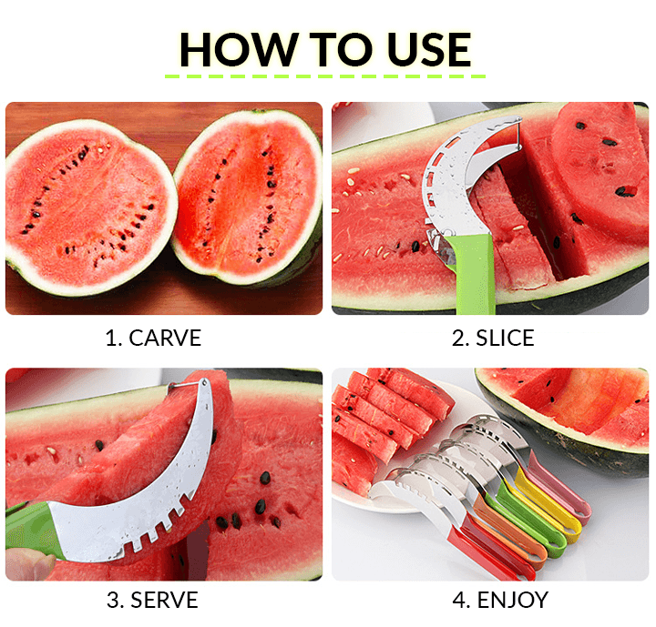 Time-saving tool of carver, slicer, and server to prepare perfect slices of watermelon with no waste - No Hassle & Mess :