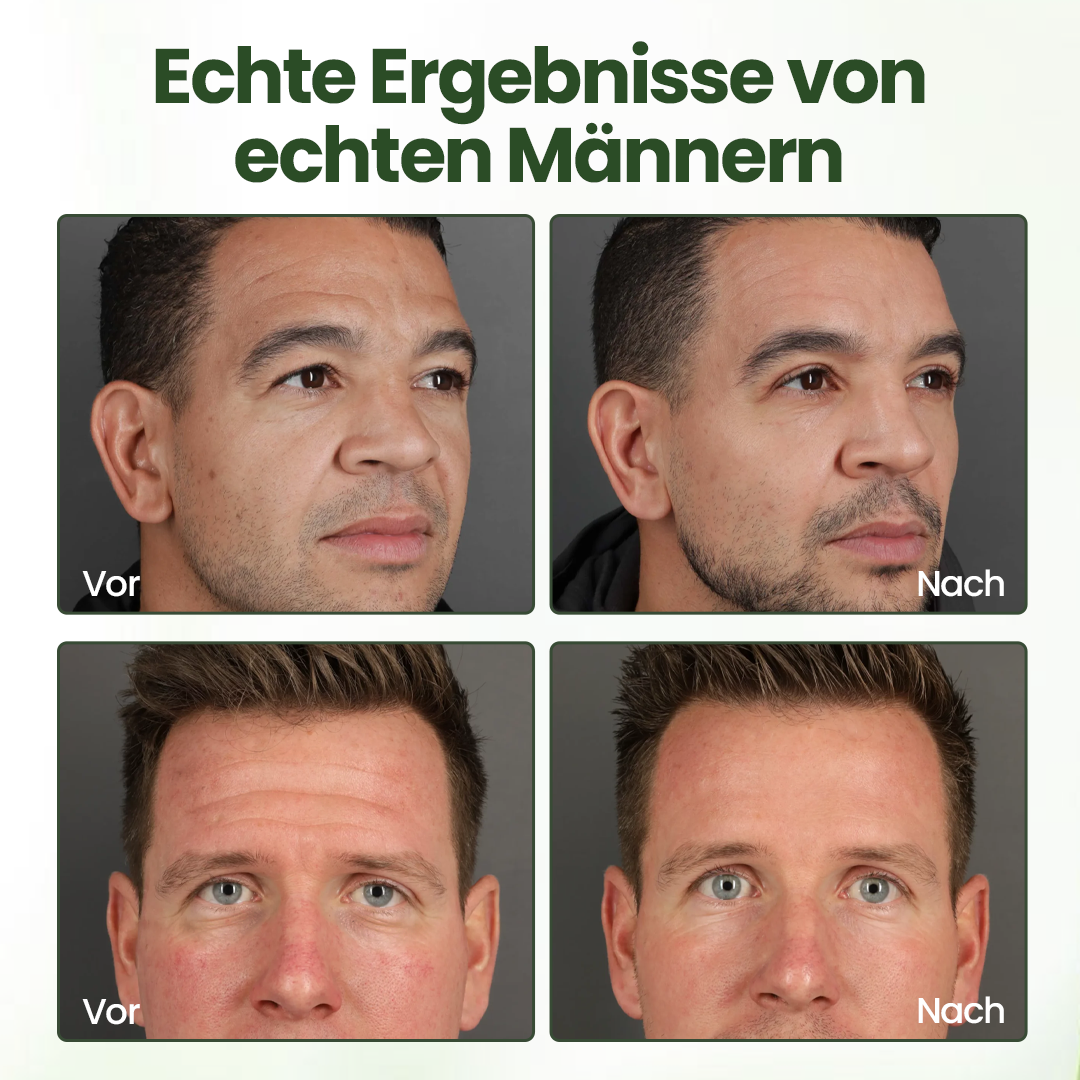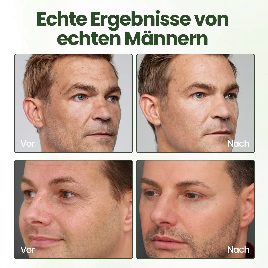 Die meisten Männer bemerken weichere, stärkere Haut innerhalb von 2 Wochen – und sichtbare Festigkeit nach 4 Wochen.