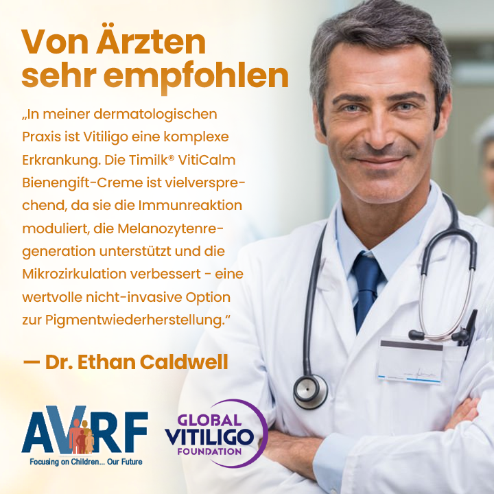 Vitiligo ist eine Autoimmunerkrankung der Haut, bei der das Immunsystem fälschlicherweise Melanozyten – die Zellen, die für die Bildung von Melanin zuständig sind – angreift. Dadurch entstehen pigmentlose (weiße) Flecken auf der Haut, die an beliebigen Körperstellen auftreten können. Obwohl Vitiligo körperlich nicht schädlich ist, führt es häufig zu emotionalem Stress und geringem Selbstwertgefühl.